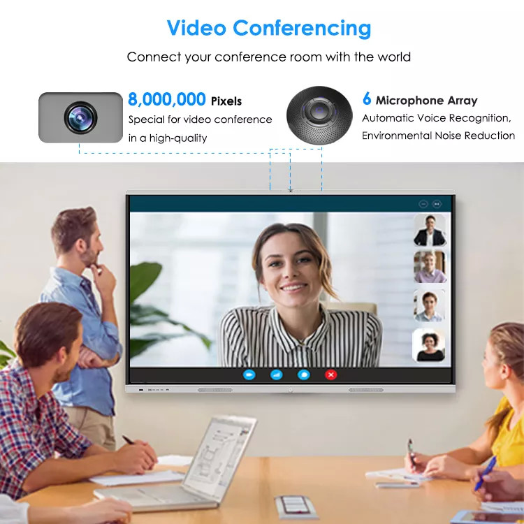 Tablica interaktywna nazywana jest również inteligentnym panelem konferencyjnym.Wygląda jak telewizor, ale ma więcej funkcji niż telewizor.Jest to połączenie elektronicznego pisania na tablicy, zdalnej wideokonferencji, systemu wideokonferencji, projekcji bezprzewodowej, głośników itp. Krótko mówiąc, konferencje ogólne Cały sprzęt używany w tablicy konferencyjnej jest dostępny, co znacznie zmniejsza przestrzeń wewnętrzną zajmowaną przez sprzęt działu zarządzania firmy.